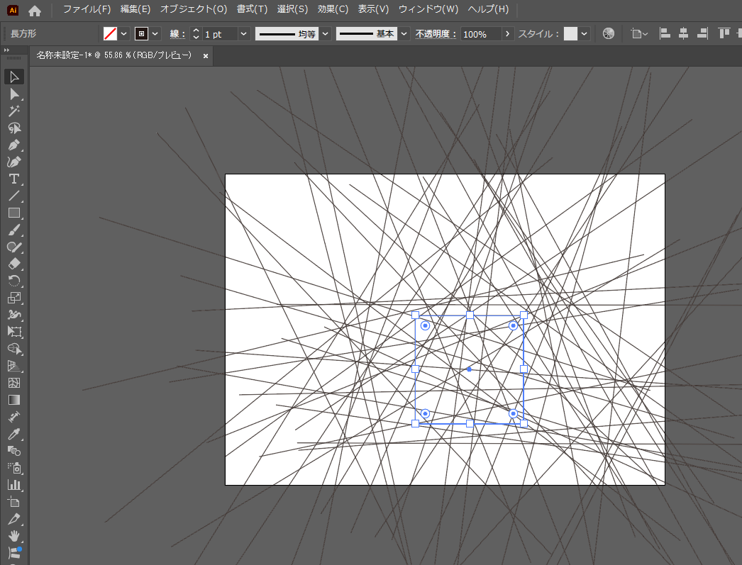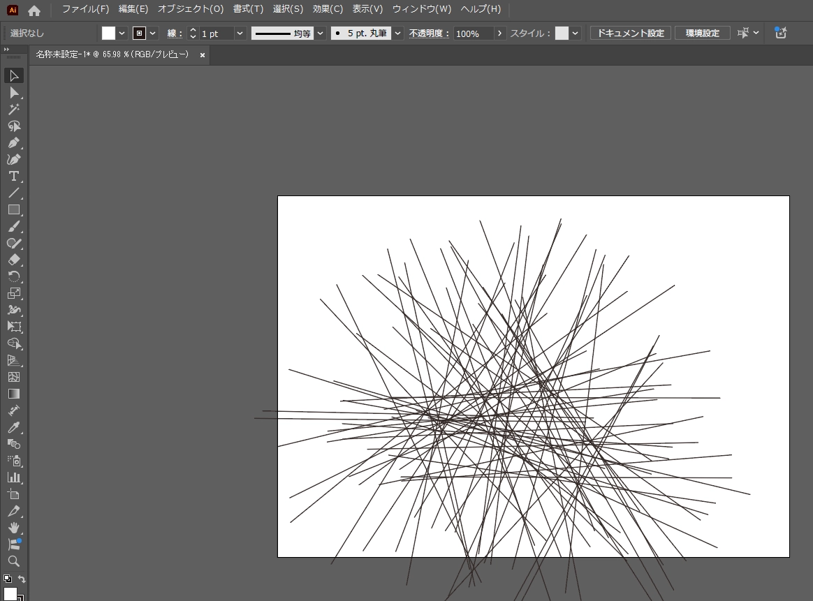 まずIllustratorでカラーモードをRGBの新規ドキュメントを作成し、直線を一本描画します。(直線であれば角度は問いません)