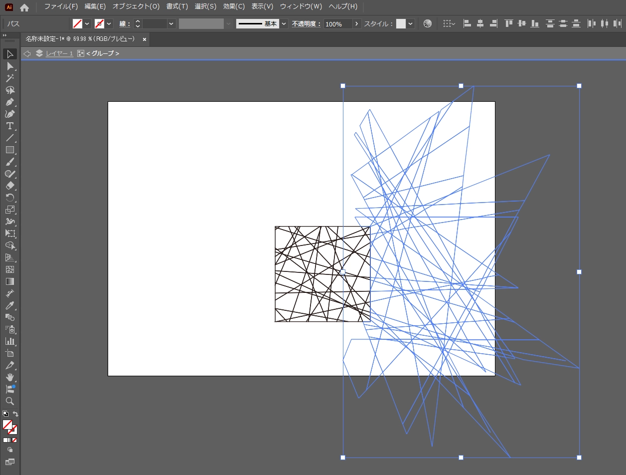 そして、正方形からはみ出ている不要なオブジェクトを消去していきます。